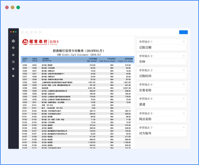 扫描件、图片流水,通过 OCR 技术识别将流水数据转化为可编辑、可统计的数据